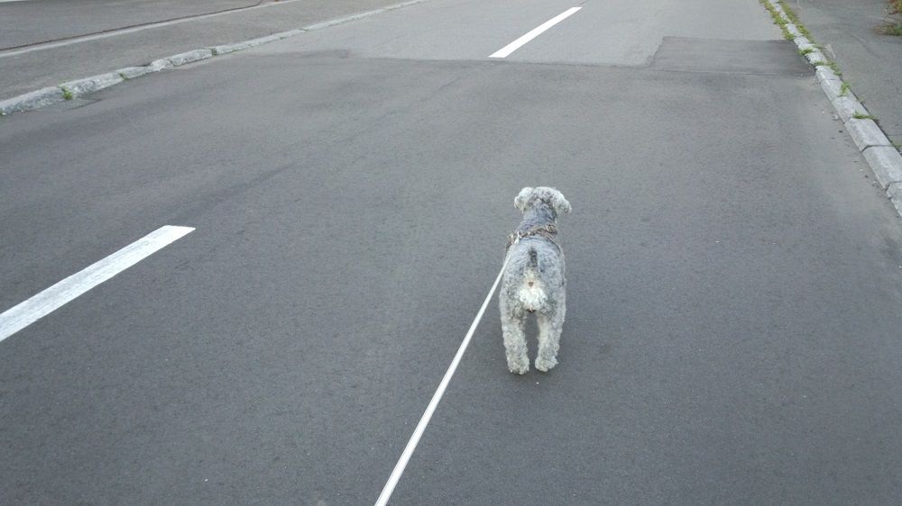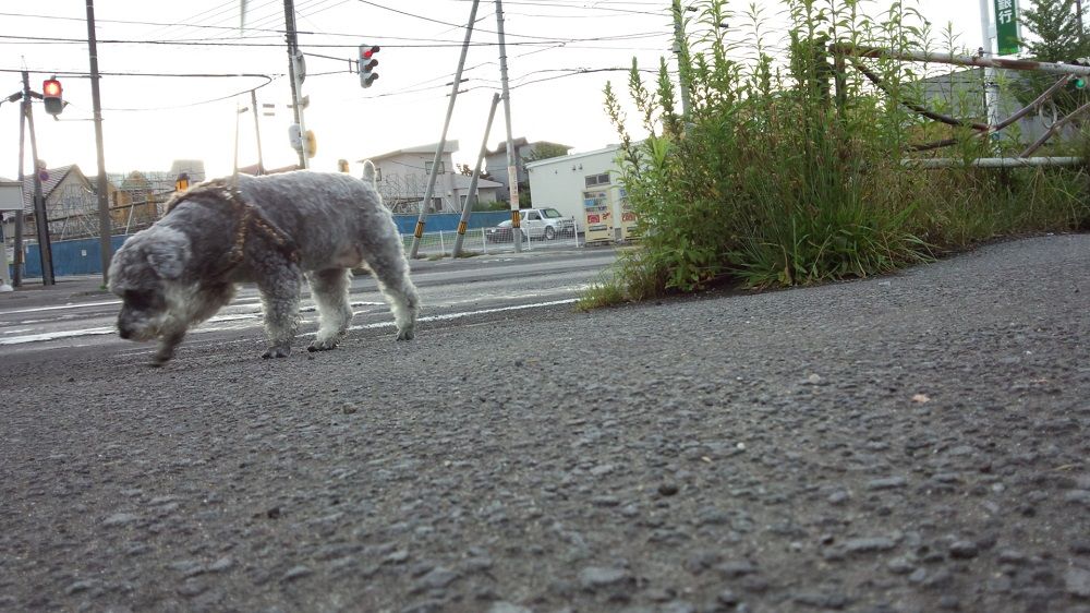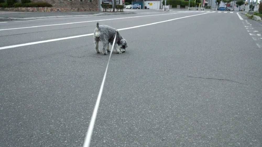 やっぱり タイヤ跡を嗅いで歩く