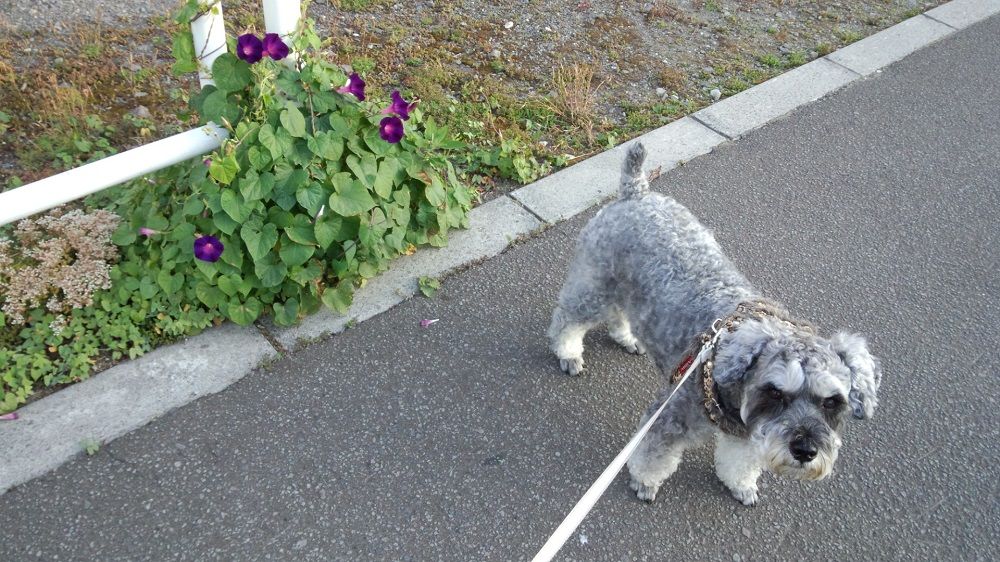 ちょっとした空き地入口に 無造作に生えるアサガオ
