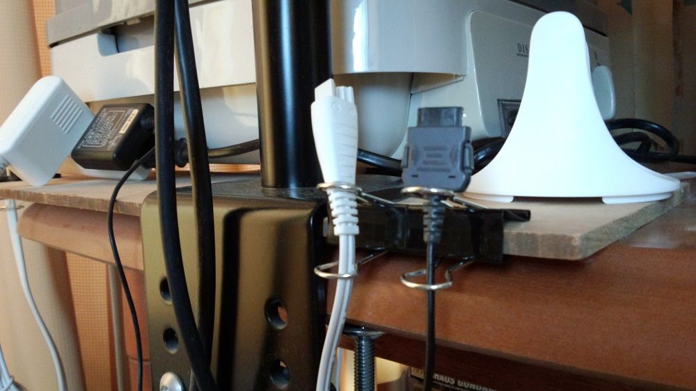 因みに奥の電源延長コードも 大きいクリップで 同じように固定しました