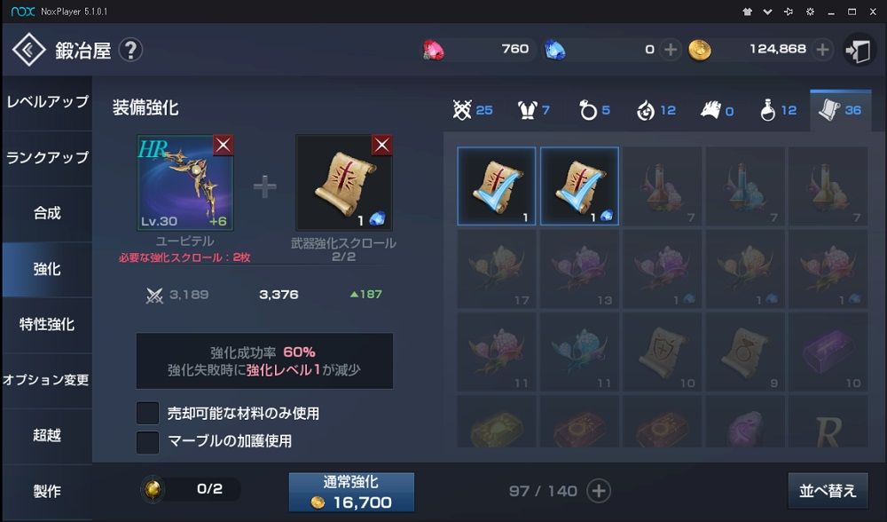 強化も+6から 強化スクロールが2枚に増えました・・・