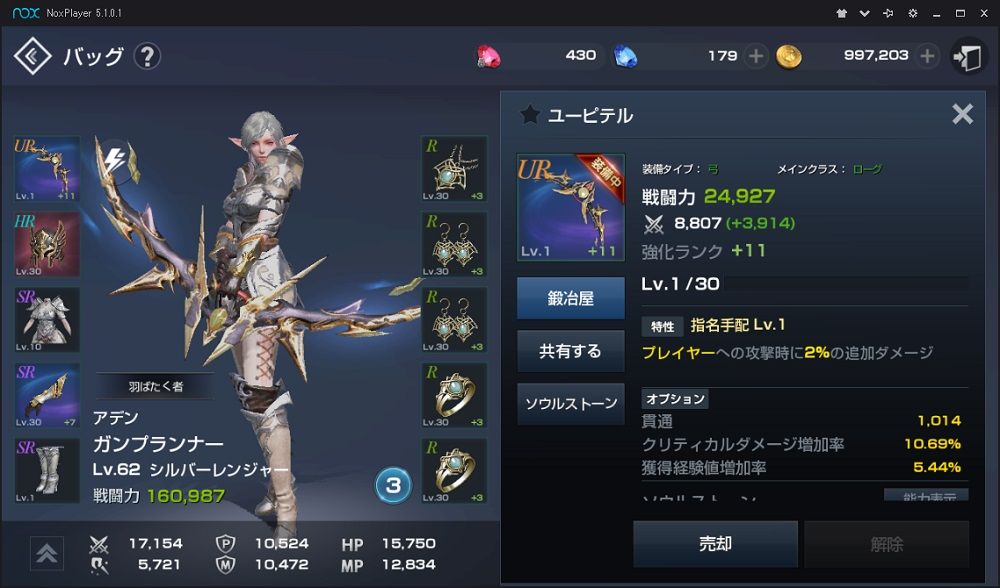 レベルも30まで上げ終わり キャラレベル31でシルバーレンジャーになったところ