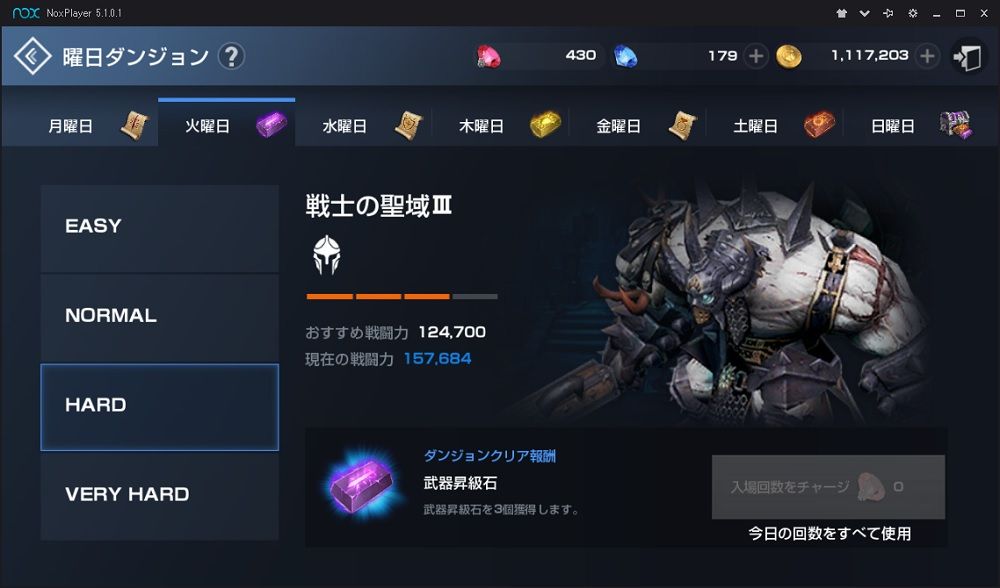 曜日ダンジョン HARDに行ける様になると 日に9個 昇級石を獲得できる