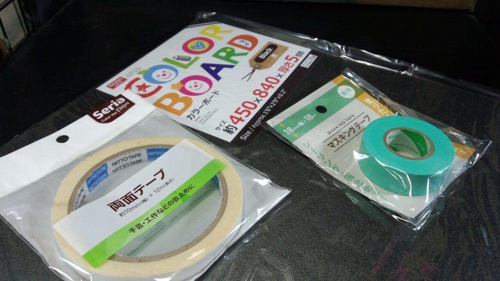 100均で 両面テープ マスキングテープ カラーボードを買ってきて